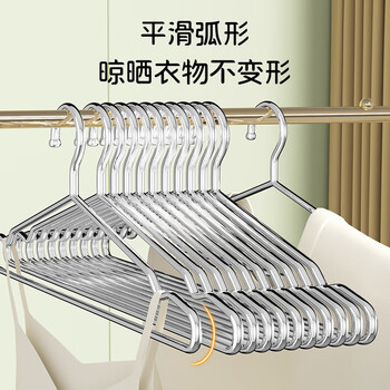 晟旎尚品衣架不锈钢衣架加粗实心晾衣架防滑衣服撑子大号男款45cm10只装
