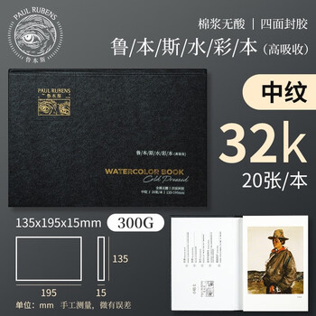 鲁本斯高吸收水彩本 全棉浆加厚32K中粗纹300g素描本图画本美术绘画本水彩纸20张0110009006