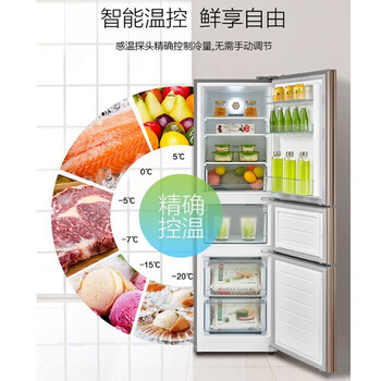 美的(Midea)217升大容量冰箱 家用三门 风冷无霜 双系统制冷 BCD-217WTM 爵士棕