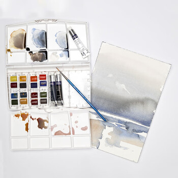 温莎牛顿【弗洛伊德同品牌】歌文水彩颜料固体水彩户外写生水彩绘画颜料16色半块3色管套