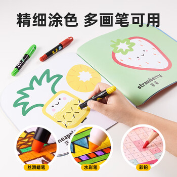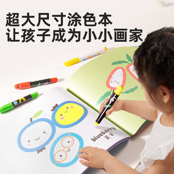 美乐童年儿童涂色本超大尺寸绘画本低幼宝宝涂鸦填色本简笔画启蒙美食认知160g加厚纸张
