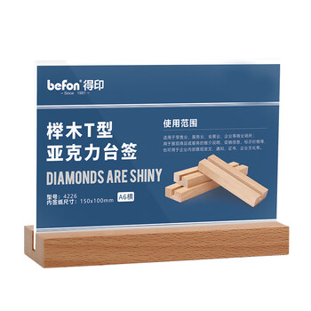 得印精致榉木T型亚克力桌牌/桌牌架/台签4226高透明台卡会议桌牌席位卡座位牌展示牌A6横1/个