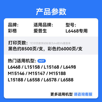 彩格L6468专用四色墨水套装适用爱普生EPSON L15158 L15168彩色墨仓式喷墨打印机墨水防水 专用墨水