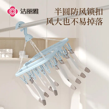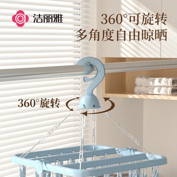 洁丽雅(Grace) 32夹衣架 可折叠晾衣架 成人儿童多功能衣架内衣袜子夹子衣架