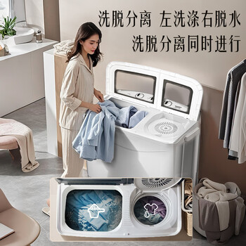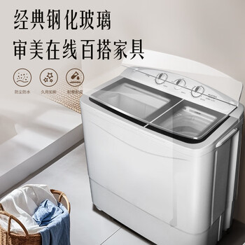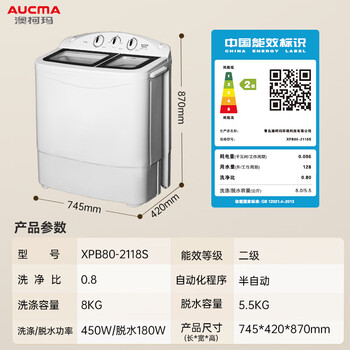 澳柯玛(AUCMA)洗衣机半自动波轮洗衣机8公斤大容量 玻璃面板双缸双桶洗脱分离脱水除毛甩干租房家用XPB80-2118S