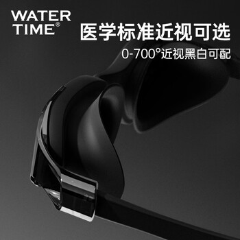 WATERTIME/水川 泳镜近视防水游泳镜防雾大框带有度数游泳眼镜男女士 黑600