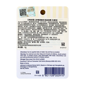 艾惟诺 Aveeno 婴儿舒缓柔嫩燕麦多效滋润棒 4g*1