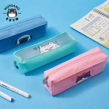齐心(Comix)小学生笔袋 透明可视文具盒 吾皇万睡正版IP联名 学生文具收纳袋 WHA3206 颜色随机