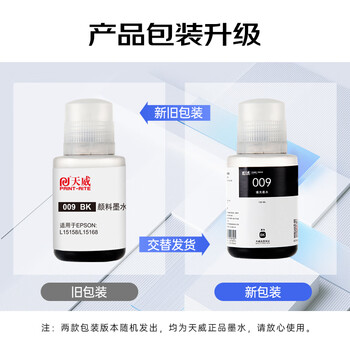 天威009墨水适用爱普生L15158 L6558 L15168 M15146 L6468 M15147 6578 15188 6498 M15188打印机颜料 黑色大容量