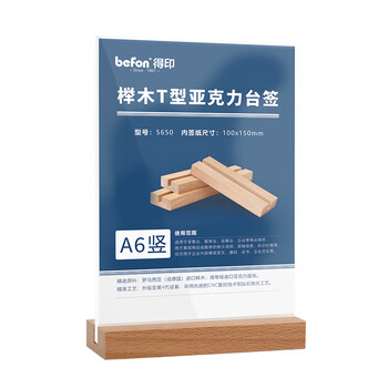 得印精致榉木T型亚克力桌牌/桌牌架/台签5650双面透明展示牌酒水牌餐牌菜单牌立牌A6竖1/个