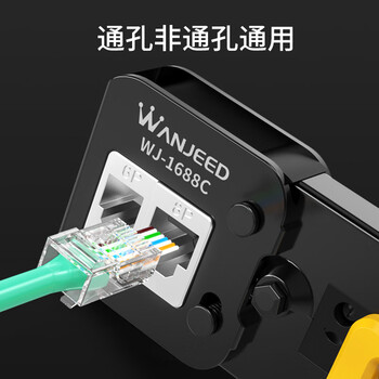 万级通孔网线钳 专业级穿孔式水晶头压接钳 多功能带棘轮8P6P网线电话线剪剥线钳子 WJ-1688C