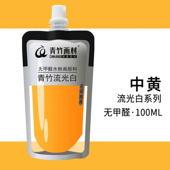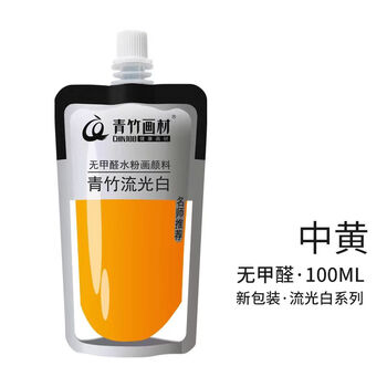 青竹画材(CHINJOO)水粉颜料流光白袋装100ml果冻颜料补充装艺考集训绘画颜料便捷装中黄速写马克笔绘画