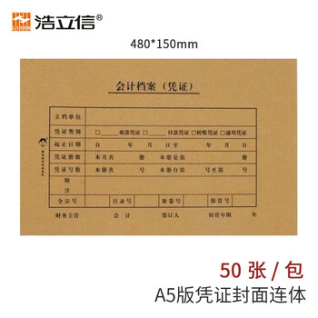 浩立信 精牛 A5版凭证封面连体连背480*150mm 50张/包 A4纸的一半 财务记账凭证皮通用记账会计封皮装订封面