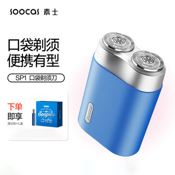 SOOCAS 迷你剃须刀 陶瓷刀片轻奢素皮机身 全身水洗 小巧便携干湿双剃刮胡刀SP1布鲁斯蓝