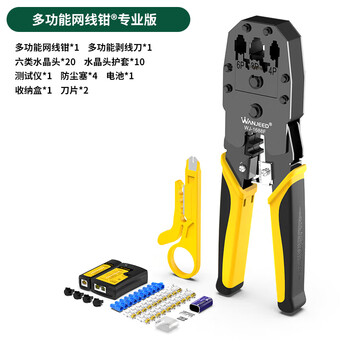 万级网线钳 三用多功能剪剥压线钳套餐 8P6P4P超五类六类水晶头压接钳 电脑网络测试仪工具 WJ-1688F