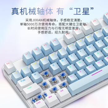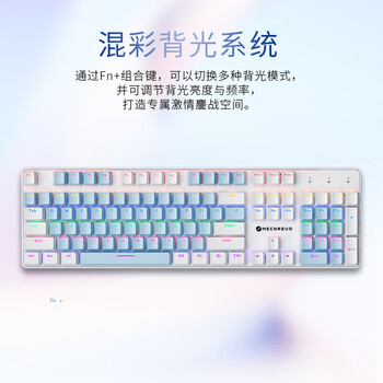 机械革命 耀·K330机械键盘 有线键盘 游戏键盘 104键混彩背光键盘 全键无冲 电脑键盘 蓝白色 青轴
