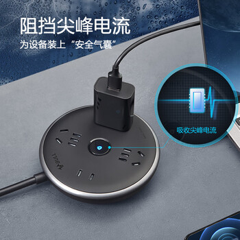 公牛(BULL)抗电涌抗浪涌插座/插线板/插排/排插/接线板/拖线板 飞碟插座 4位总控全长1.5米 GN-R6220