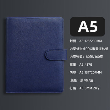 嘉然恒 活页本A5商务办公笔记本本子高颜值25K简约加厚活页记事本可拆卸替换活页内芯会议记录本可定制深蓝色