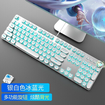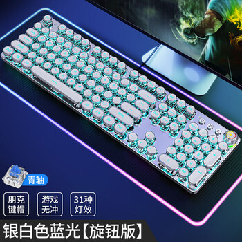 前行者(EWEADN)TK100朋克机械键盘电竞游戏有线台式电脑笔记本外接办公打字复古外设吃鸡104键 白色冰蓝光青轴