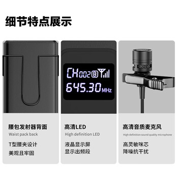 领夹话筒*4、腰包*4、接收器*1、适配器*1、彩盒、角码*2、电源、音频线、天线、防滑圈、防风棉、电池、说明书、合格证、保修卡