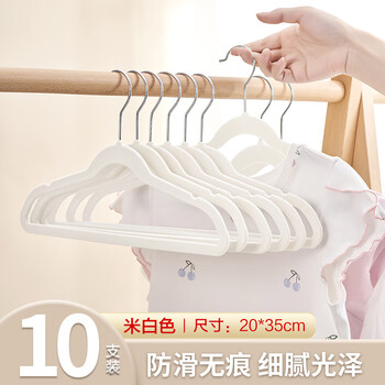 JEKO&JEKO植绒儿童衣架婴儿宝宝晾衣架新生儿衣挂衣架米白色10只装