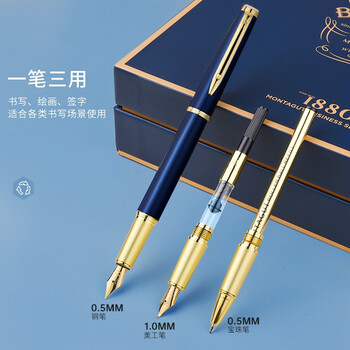 梦特娇(MONTAGUT)【马年礼物】钢笔签字笔美工笔三笔头男女节日礼品生曰礼物伴手礼睿智系列金属蓝