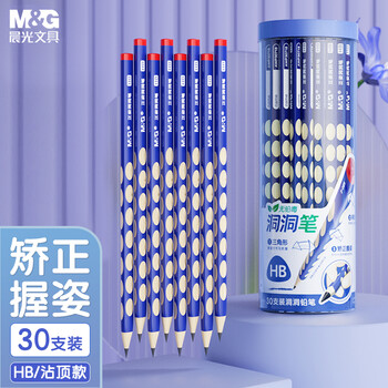 晨光(M&G)文具铅笔HB洞洞铅笔30支 小学生开学练字铅笔 儿童正姿矫姿 三角木杆沾顶易抓握 AWP30718