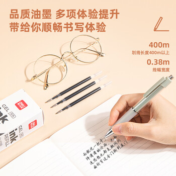 得力(deli)按动中性笔芯6906黑色0.5mm水性笔签字笔替芯子弹头碳素水笔芯20支装