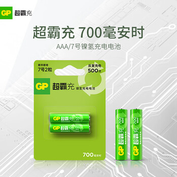 超霸(GP)充电电池7号2粒700mAh镍氢电池 适用相机/闪光灯/游戏手柄/血压计/遥控玩具车等7号/AA/商超同款