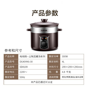 苏泊尔(SUPOR) 电炖锅 4L紫陶系列 ZMD安心系列家用炖盅煲汤锅机械型电炖锅煮粥锅 DG40YK6-30 RH.