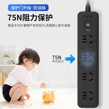 德力西(DELIXI)国标插座/插线板/插排/排插/拖线板/插板/接线板 3位组合总控开关 全长3米 黑色