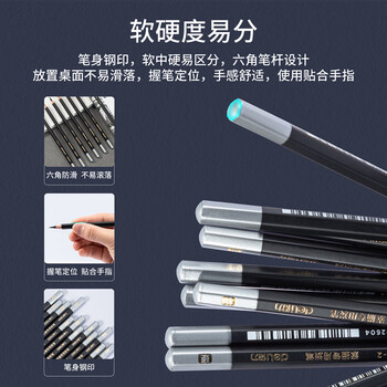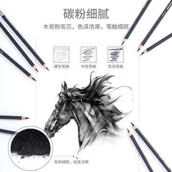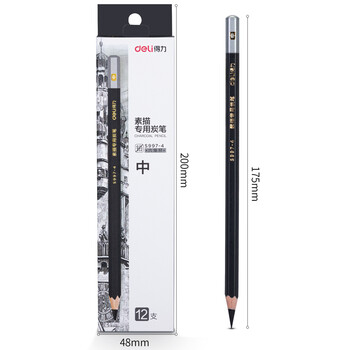 得力(deli)素描炭笔初学者碳笔软中硬绘画美术生专用12支/盒中炭S997-4图画划线勾勒