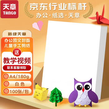 天章 (TANGO)【老师推荐】A4硬卡纸白色加厚打印纸 幼儿园学生手工绘画纸 彩色手工DIY折剪纸白色180g 100张/包