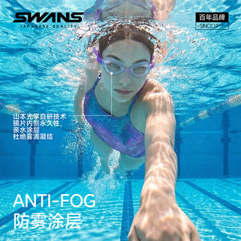 SWANS泳镜日本进口防水防雾高清平光游泳镜大框成人潜水专业SW45-4紫色