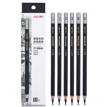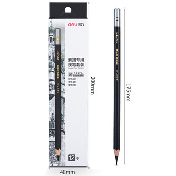 得力(deli)素描炭笔 初学者速写碳笔软中硬 绘画美术生专用工具 12支/盒混装 S997A