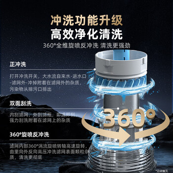 沁园前置过滤器家用净水器8T大通量 40微米手动正反冲洗过滤器 压力表监控全屋净水器P-S5516