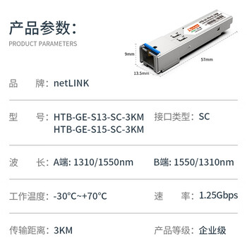 netLINK sfp千兆光模块 1.25G单模单纤A端+B端 3km sc 适用国产设备 一对 HTB-GE-S13/S15-SC-3KM