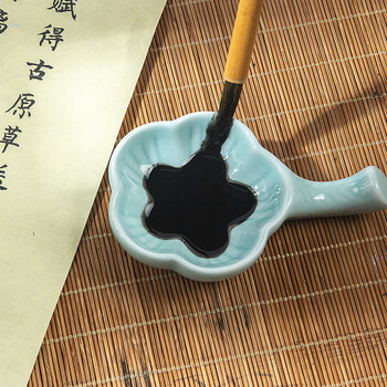 天天练(Tiantianlian)青云梅花墨碟 陶瓷水碟搁笔盛墨笔掭文房书法用品 TN-0744