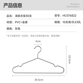 美丽雅 衣架30支 防滑浸胶晾衣架干湿两用无痕晒衣架金属挂撑衣架子灰色