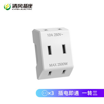 清风(kyfen)一转三无线2脚转换插头学校宿舍旅行插排拓展插座 白色