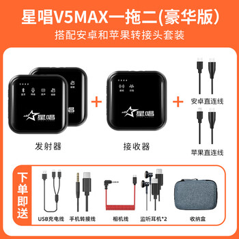 星唱V5 MAX无线领夹麦克风小蜜蜂无线话筒收录音设备领夹直播k歌蓝牙夹领式抖音Vlog视频降噪器一拖二