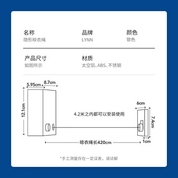 LYNN隐形晾衣绳免打孔阳台晾衣架可伸缩室内卫生间晾衣服神器钢丝绳子