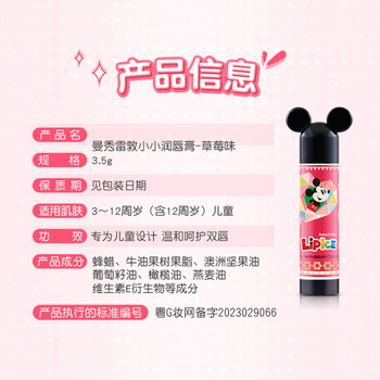 曼秀雷敦什果冰小小儿童唇周唇部润唇膏 草莓味3.5g 温和滋润补水保湿换季