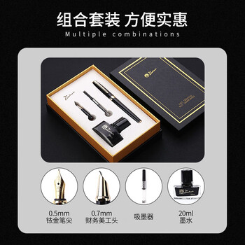钢笔×1财务美工笔尖×1 吸墨器×1 墨水20ML×1 礼品盒×1 说明书×1