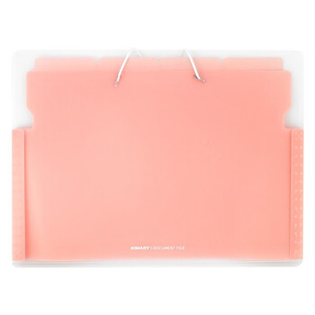 金得利 5格A4横式手提风琴包大容量竖款文件夹学生试卷资料收纳包文件袋透明多层分类文件包 粉色 DC7405