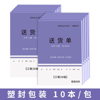 西玛(SIMAA)旗舰紫三联送货单 32k 130*190mm 20组10本装 销货清单销售出货出库无碳复写单据 8540