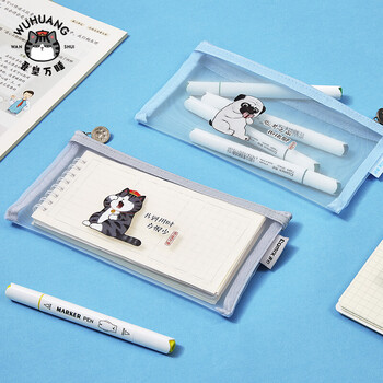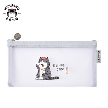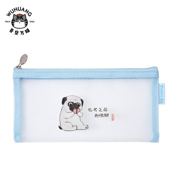 齐心(Comix)小学生透明网纱笔袋 吾皇万睡正版IP联名 考试专用文具袋 文具盒 单个装A4/3颜色随机