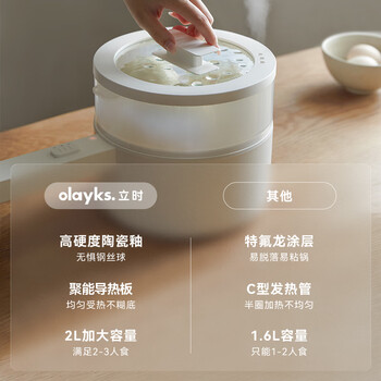 olayks立时 电煮锅多功能锅宿舍小电锅煎炒一体电热锅学生宿舍泡面电火锅电蒸锅 2L