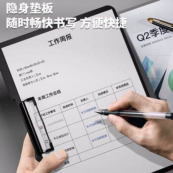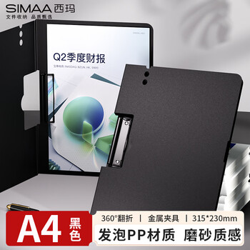 西玛(SIMAA)A4横式折页板夹文件夹 书写板夹会议夹写字板诗朗诵签约塑料夹板 试卷资料收纳夹 黑色8476