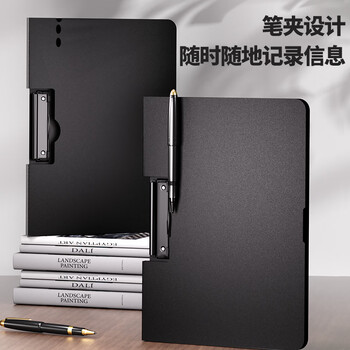 西玛A4横式折页板夹黑色单个装